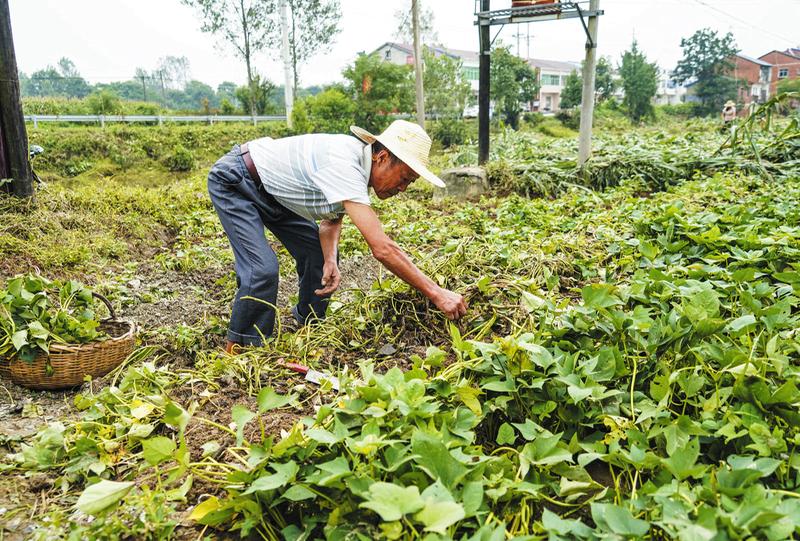 不等不靠,抗灾自救。8月15日,曾都区洛阳镇金鸡岭村村民正在清理被大水冲过的农田,以减少洪灾损失。