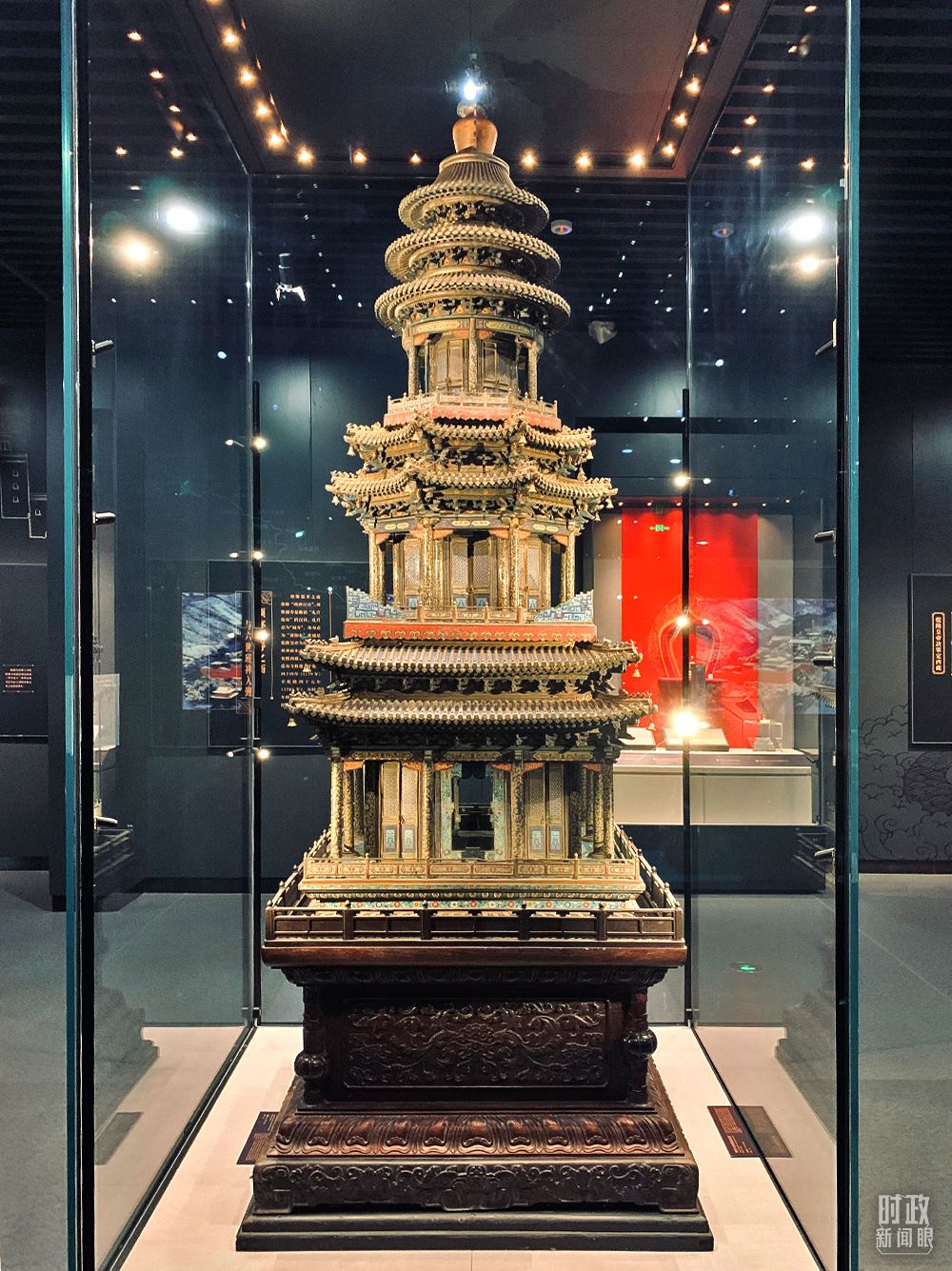 △承德博物馆镇馆文物——清紫檀木座铜胎珐琅塔,通高305厘米。乾隆皇帝为迎接六世班禅来承德朝觐,下谕旨兴建须弥福寿之庙,并将这一文物移来此处。(总台央视记者范一鸣拍摄) 清代修建避暑山庄,除了避暑,还有一个更重要的原因,就是边防。清代皇帝放弃了沿用数千年的防御工事——长城。原因很简单:“昔秦兴土石之工,修筑长城。我朝施恩于喀尔喀(代指蒙古诸部),使之防备朔方,较长城更为坚固也。”这里成为清代皇帝与兄弟民族契阔谈宴之地。