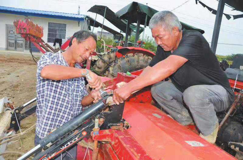 位于随县安居镇黄寨村的随县创丰种植专业合作社近3000亩稻谷丰收在望。图为工人们未雨绸缪,抢修农机,确保收割安全。