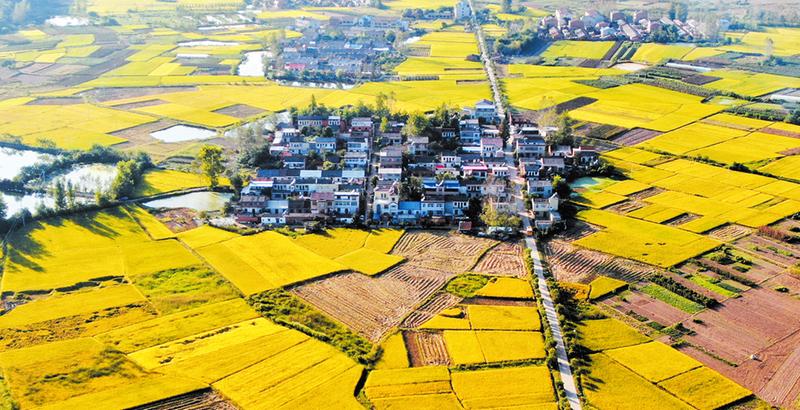 秋高气爽,我市中稻进入成熟期,黄澄澄的水稻勾勒出丰收的图景。