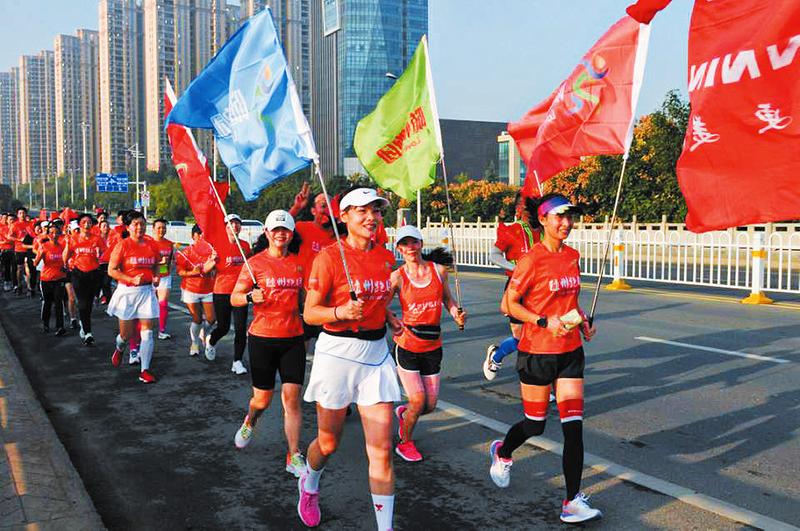 国庆节期间,随州跑团开展环白云湖晨跑,庆祝国庆。