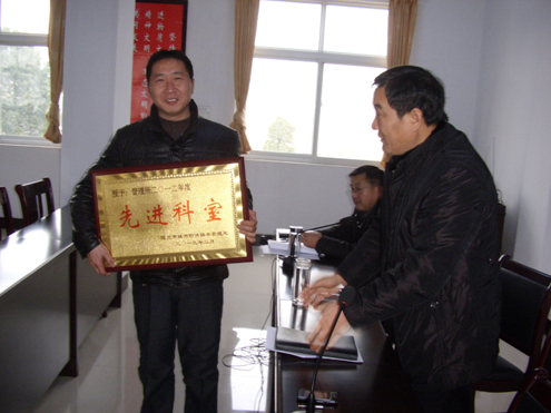 市城市防洪排水管理处书记、主任夏洪国为防洪排水设施管理所颁发先进科室奖牌
