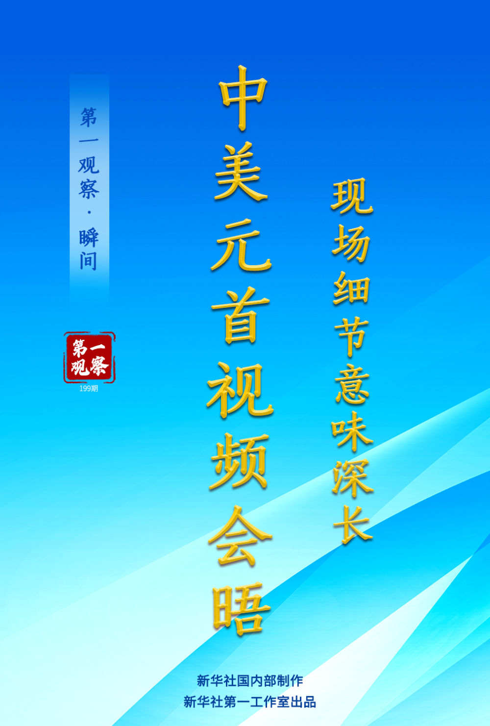 新华社记者 岳月伟 摄 国家主席习近平同美国总统拜登面带微笑,相互挥手致意。 北京人民大会堂——华盛顿白宫。跨越大洋,超越时差,围绕事关中美关系发展的战略性、全局性、根本性问题以及共同关心的重要问题,两国元首充分、深入、坦诚交流。 今年以来,习近平主席同拜登总统于2月和9月两次通电话,但视频会晤还是第一次。 视频会晤是美方主动提议举行的。拜登总统显然对此次会晤期待已久。“很高兴见到你,主席先生。”会晤一开场,他就说,“希望下次我们再会晤时,就可以像过去我访华时那样面对面了。” “今天是我们第一次以视频方式会晤。看到老朋友,我感到很高兴。”习近平主席回应。 不知有意还是无意,拜登总统今天系了一条红色领带。 轻松开场之后,整个世界都在关心,中美元首接下来谈得如何? 从会晤时长可见一斑——原计划1小时30分钟的上半场会晤,超时近半个小时才告一段落;短暂休息后,又开始下半场。 整场会晤结束时,北京已是正午,而华盛顿已近午夜。 可见双方谈得很多、很深、很透。