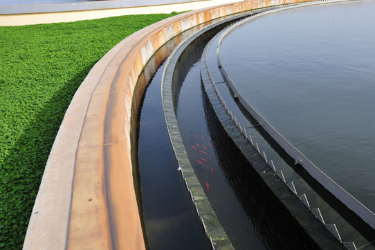 污水处理厂二沉池处理后的水中游鱼嬉戏