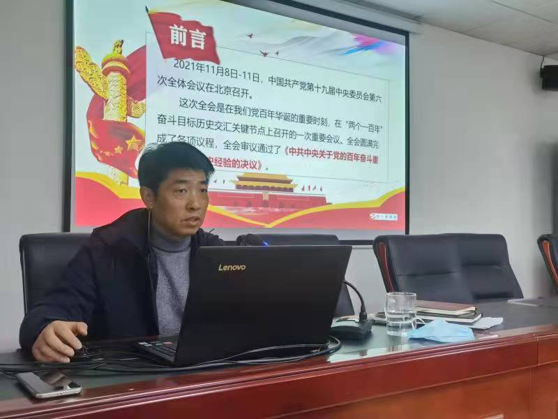 为深入学习宣传贯彻党的十九届六中全会精神,12月17日上午,市金控集团召开党的十九届六中全会精神专题宣讲会议,市金控集团党总支副书记、董事长孙家杰作专题宣讲。市金控集团领导班子全体成员,集团公司及各子公司全体党员、预备党员、入党积极分子共计40余人参加会议。 会上,市金控集团党总支委员、纪检委员钱明领学了《中共随州市委办公室关于做好党的十九届六中全会精神学习宣传的通知》和市党史学习教育领导小组《关于学习贯彻党的十九届六中全会精神深化拓展全市党史学习教育的通知》。 孙家杰以“深刻领会党的百年奋斗重大成就和历史经验 汇聚集团高质量发展强大精神动力”为题,围绕党的十九届六中全会的重大意义、主要内容、核心要义,重点对《中共中央关于党的百年奋斗重大成就和历史经验的决议》进行了全面解读和详细阐述。孙家杰指出,《决议》是建党以来第三份重要的全面总结,深入总结了党的百年奋斗重大成就和历史经验,对于全党从党的历史和经验中铭记初心和使命,汲取力量、信心和智慧,进一步统一思想、统一意志、统一行动,夺取新时代中国特色社会主义新的伟大胜利,具有重大现实意义和深远历史意义。孙家杰强调,集团上下要把学习贯彻落实十九届六中全会精神与深入贯彻习近平总书记考察湖北、参加湖北代表团审议时的重要讲话精神结合起来,与开展党史学习教育、常态化作风建设、贯彻落实市第五次党代会精神 、奋力完成全年目标任务、科学谋划明年重点工作等紧密结合起来,真正让党的十九届六中全会激发出的工作热情和进取精神,转化为推动集团高质量发展的强大精神动力,以更新举措、更实作风创造新业绩、作出新贡献。 |
