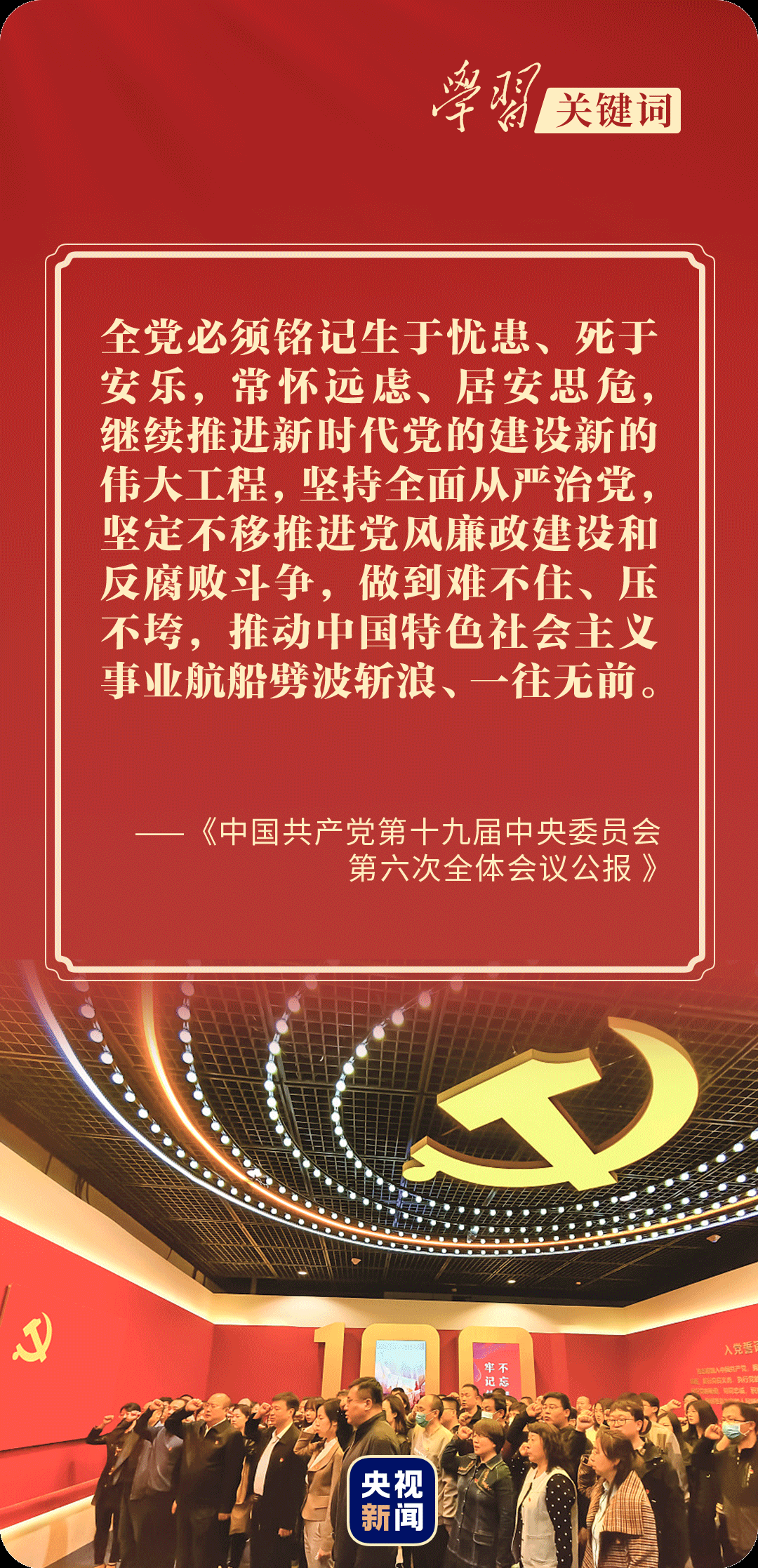 2021年岁尾,中央纪委国家监委网站联合国家语言资源监测与研究中心,推出2021年度十大反腐热词,“自我革命”就是其中之一。《中共中央关于党的百年奋斗重大成就和历史经验的决议》将“坚持自我革命”作为中国共产党百年奋斗的历史经验之一,要求全党必须铭记生于忧患、死于安乐,常怀远虑、居安思危,继续推进新时代党的建设新的伟大工程。 中国共产党历经百年、成就辉煌,党内党外、国内国外赞扬声很多。 “越是这样越要发扬自我革命精神,千万不能在一片喝彩声中迷失自我。”习近平总书记多次强调“增强忧患意识”。他深刻指出:“功成名就时做到居安思危、保持创业初期那种励精图治的精神状态不容易,执掌政权后做到节俭内敛、敬终如始不容易,承平时期严以治吏、防腐戒奢不容易,重大变革关头顺乎潮流、顺应民心不容易。” 在党的十九届六中全会上,习近平总书记的重要讲话逐一破解这些“不容易”: ——我们要居安思危,时刻警惕我们这个百年大党会不会变得老态龙钟、疾病缠身。 ——对党的历史上走过的弯路、经历的曲折不能健忘失忆,对中外政治史上那些安于现状、死于安乐的深刻教训不能健忘失忆。 ——全党同志要永葆自我革命精神,增强全面从严治党永远在路上的政治自觉,决不能滋生已经严到位、严到底的情绪。 ——对自身存在的问题不能反应迟钝,处理动作慢腾腾、软绵绵,最终人亡政息。