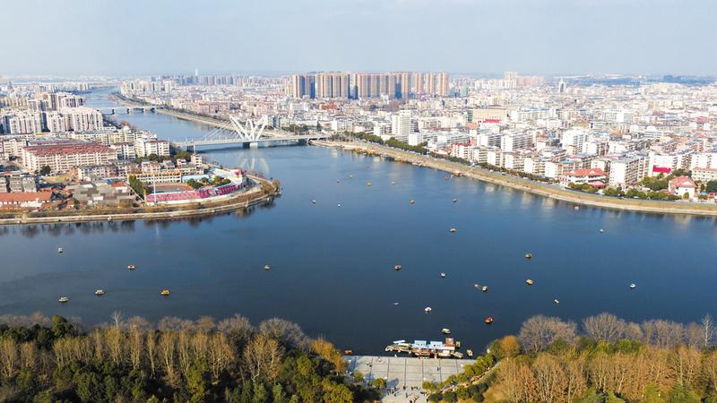 近日天气晴好,许多市民泛舟白云湖上,欣赏随城美景。