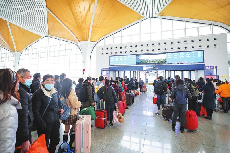 针对元宵节后返程客流集中叠加的具体情况,随州南站提前制定预案,全员上岗,严格落实各项防疫措施,确保旅客出行无忧。图为2月16日,旅客正在候车室等候列车。