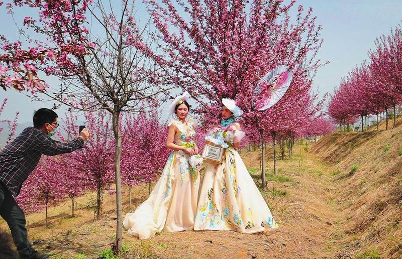 3月29日,广水市第二届海棠文化旅游节云赏花活动在吴店镇举行。2000余亩海棠园,粉红的海棠花开正艳,一团团、一簇簇聚在枝头,随风摇曳,吸引众多游客前来观赏游玩。现场还有古装秀、古筝演奏、农特产品展销等活动。
