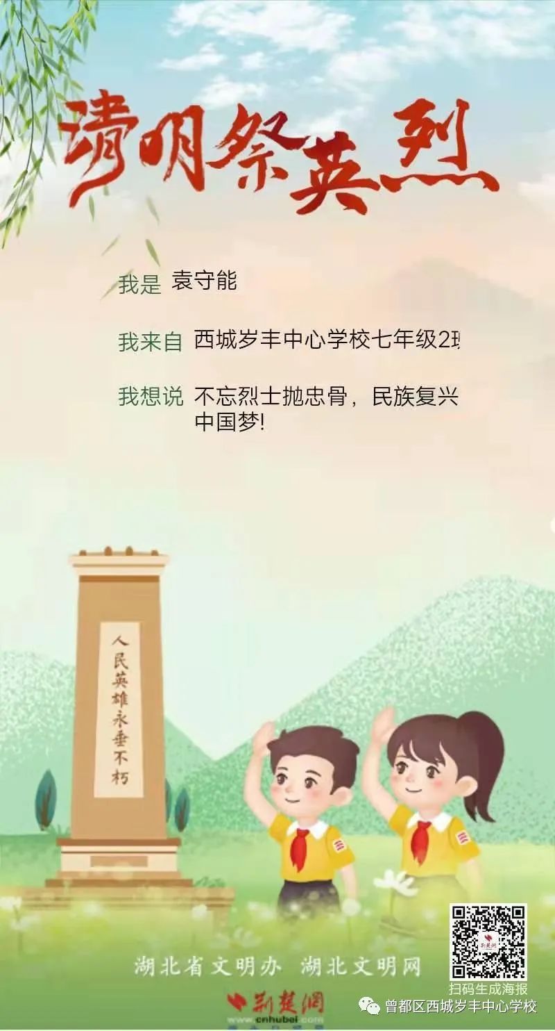 | 清明节,与春节、端午节、中秋节并称为中国四大传统节日,是追思和缅怀的日子。 2022年清明节,曾都区西城岁丰中心学校积极响应省、市文明办“网上祭英烈”专题活动,号召全体少先队员积极在家参与网络签名寄语活动,引导教育学生文明祭扫,继承先烈遗志,树立远大理想。 少先队员们在家长的协助下,积极参加“网上祭英烈”活动,并纷纷在网上向英雄先烈们鞠躬献花,抒写感言寄语。 各中队辅导员在网上开展了“缅怀英烈寄忠魂 迎接二十大感党恩”主题队会课,各少先队员认真学习。 少先队员们在队会课后自主学习英烈事迹,用手折出对英烈的纪念。 通过清明节网络祭英烈专题教育、“缅怀英烈寄忠魂 迎接二十大感党恩”主题队会课,全体少先队员深刻地认识到当今幸福生活来之不易,学习到英烈无私奉献的精神。 他们表示:先烈英雄们的鲜血没有白流,少先队员一定会牢记历史,不忘初心,勤奋刻苦,继承革命先烈的遗志,用自己出色的表现告慰革命先烈的英灵。 |