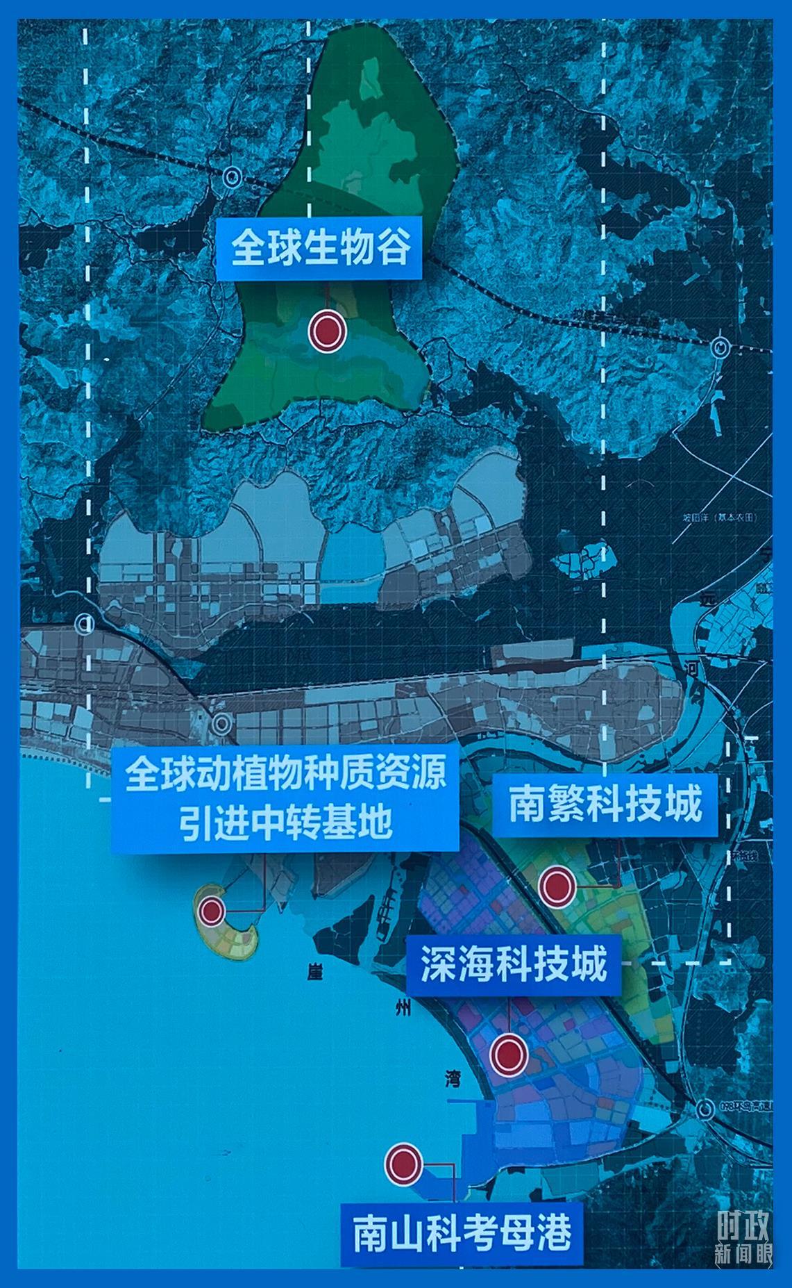 △南繁科技板块包括南繁科技城、全球动植物种质资源引进中转基地、全球生物谷,深海科技板块重点布局深海科技城、南山科考母港。(总台央视记者郭晓龙拍摄) 种子实验室:天涯海角育“良种” 10日下午,习近平总书记首先来到崖州湾种子实验室,了解海南支持种业创新等情况。
