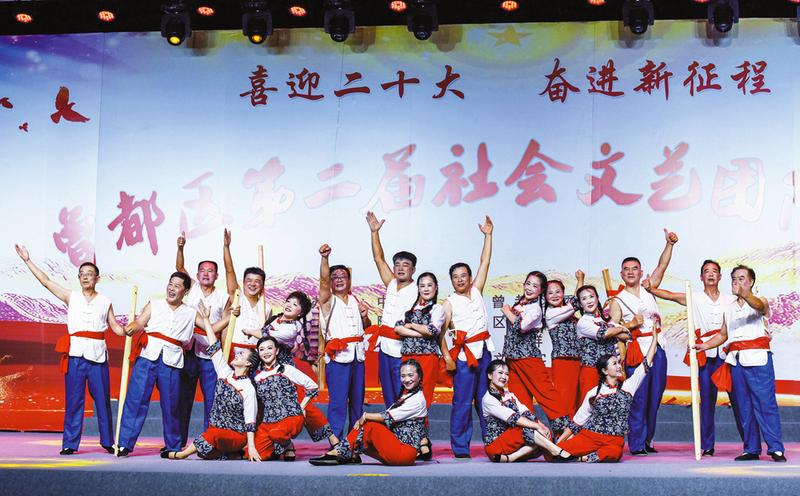7月12日,“文化力量·民间精彩”曾都区第二届社会文艺团队展演活动在神农公园举办,以精彩节目喜迎党的二十大。14个社会文艺团队逐一登台展示风采。 (随州日报全媒记者李文军、通讯员余涛、李静摄)