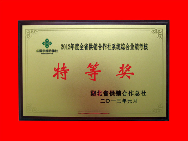 2012年度全省供销合作社系统综合业绩考核特等奖
