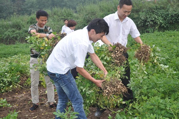 随岳高速淮河管理所组织员工下乡体验,帮助农民摘花生。
