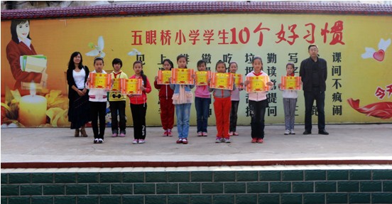 学校领导为《感恩卡》制作一等奖获奖者颁奖