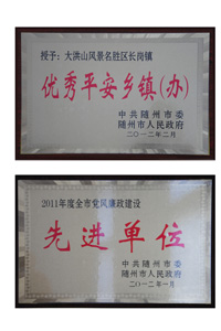 大洪山管委会机关被授予优秀平安乡镇的称号。