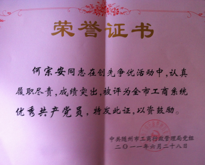 获得的荣誉证书