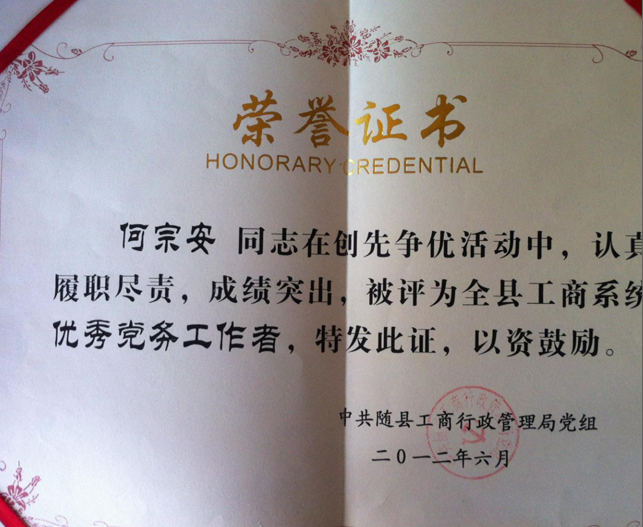 获得的荣誉证书