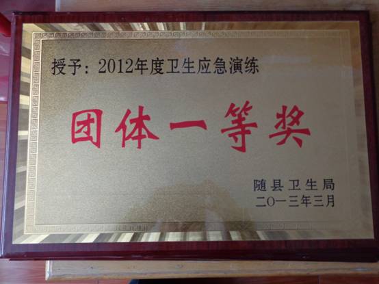 吴山卫生院被授予2012年度卫生应急演练团体一等奖。