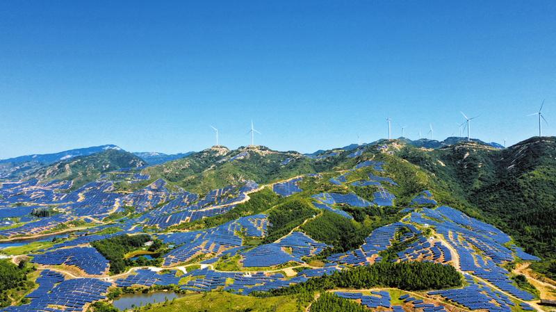 近年来我市风电、光电为代表的新能源产业发展迅猛,形成了“捕风逐日,风光无限”的局面,截至7月底,全市新能源装机容量达246万千瓦,占全省新能源装机容量的21%,居全省第一。图为位于随县的齐星集团万和农光互补光伏发电站和华润新能源万和风电场。 (随州日报全媒记者徐斌摄)