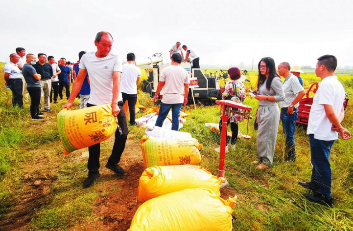 9月16日,曾都区环联种植合作社在随州高新区淅河镇老孙家湾村举办香稻现场观摩测产验收会。经测量万象优品种香稻具有高产量、高抗性、高品质等特性,亩均产量650公斤左右,按每公斤比普通稻增收0.8元计算,亩均可增收300至500元。(随州日报全媒记者李文军摄)
