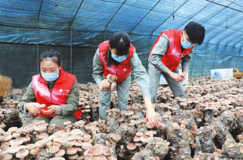 日前,曾都区供电公司组织党员和团员青年到曾都区洛阳镇龚店村开展志愿服务,帮助香菇种植大户采摘香菇,密切与客户联系,优化营商环境,支持特色产业发展。 (随州日报通讯员宫瑜、刘星雨摄)