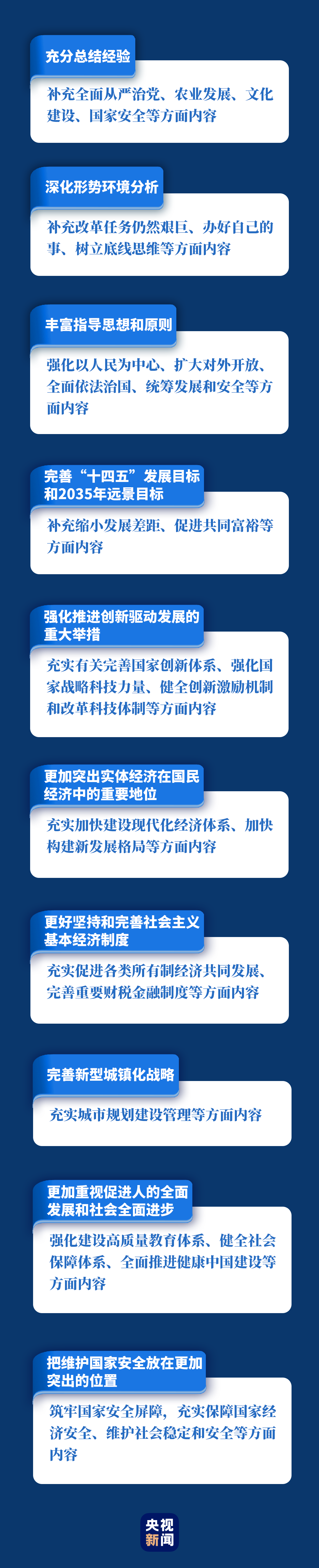 文件起草组逐条分析各方面意见和建议,做到了能吸收的尽量吸收,对建议稿增写、改写、精简文字共计366处,覆盖各方面意见和建议546条。 这是我国党内民主和社会主义民主的生动实践。 站在“两个一百年”历史交汇点,摆在我们面前的历史性课题是加强顶层设计和科学规划,继续贯彻落实中共十九大作出的战略安排,制定好中长期发展规划建议,指导全党全国做好未来5年和更长时期经济社会发展工作。