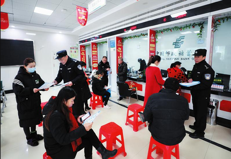 近日,广水市陈巷派出所民警深入学校、商超、银行网点,广泛开展反诈骗宣传活动,提升了居民识别骗术和安全防范意识。(随州日报通讯员武健摄)