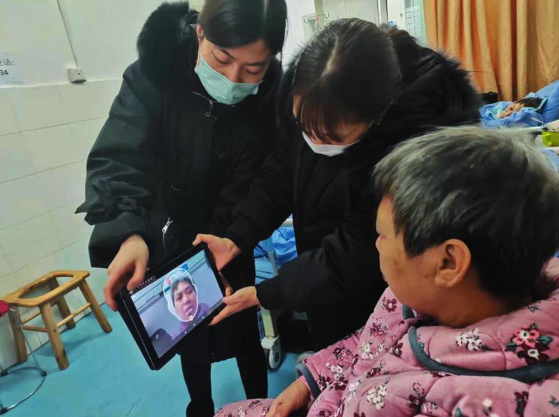 近期,市邮政公司认真贯彻国办发45号文件关于社保卡服务工作标准,高效落实老年人等特殊群体延伸服务工作。图为曾都分公司网点营业员到市中心医院为行动不便老人办理社保卡激活业务。 (随州日报通讯员张盼盼摄)