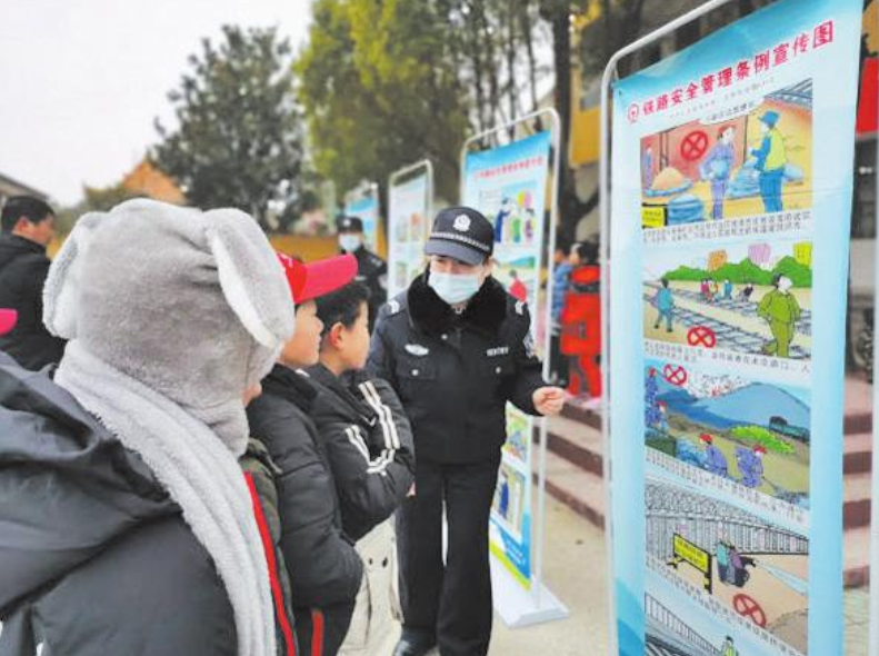 近日,武汉铁路公安处广水车站派出所联合广水车站深入辖内铁路沿线的孝子中心小学、南新小学、杨家河小学,开展“快乐过寒假,安全不放假”铁路安全主题教育宣传活动。(随州日报通讯员黄萍、史惠摄)