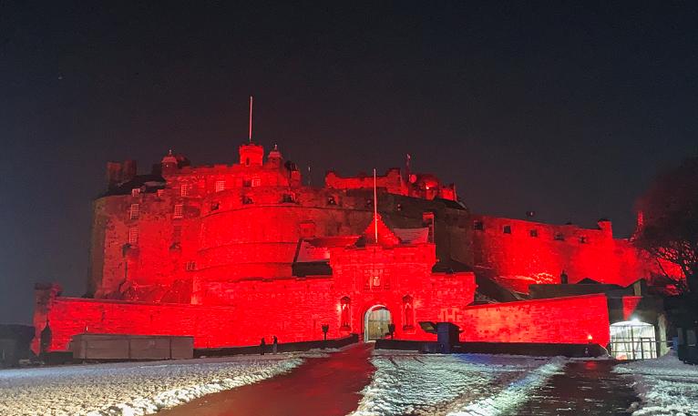 春节期间,爱丁堡城堡和苏格兰威士忌体验中心点亮专属中国红,庆祝牛年新春。
