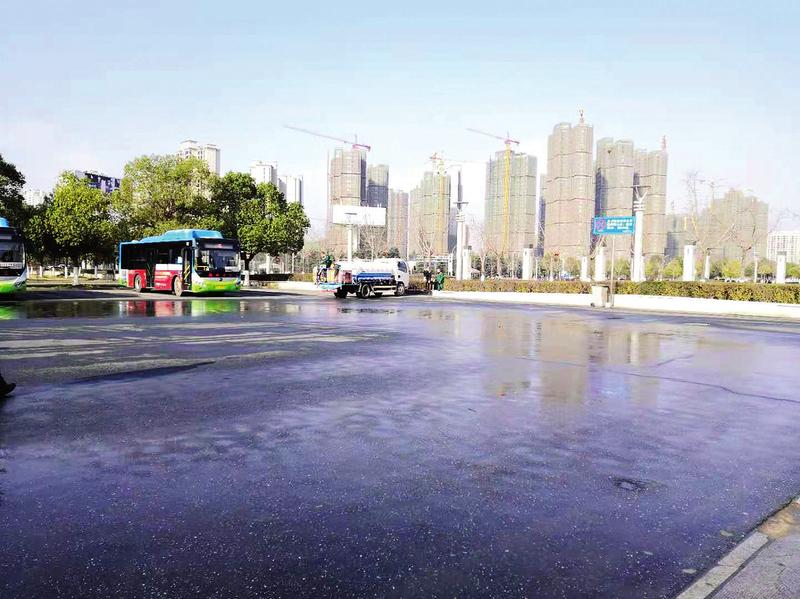 2月18日,春节假期后上班第一天,市城管委绿化处对全市广场游园及公共设施进行全面消杀灭菌。 (随州日报全媒记者陈云、通讯员周红云摄)