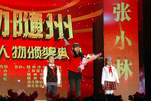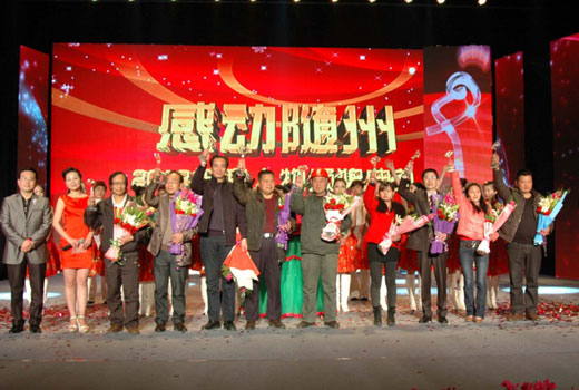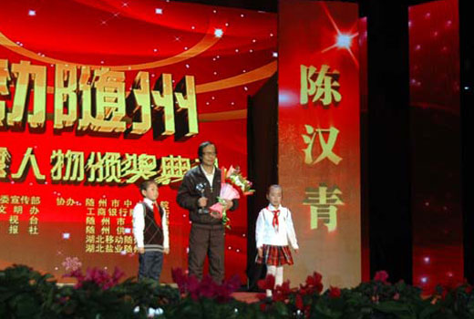 3月5日晚,“2012感动随州人物”暨随州市第三届道德模范、随州好人颁奖典礼在市神农大剧院隆重举行。图为随州道德模范与好人在蚌精现场合影。 3月5日晚,“2012感动随州人物”暨随州市第三届道德模范、随州好人颁奖典礼在市神农大剧院隆重举行。图为已故随州道德模范张小林之女张莹代父领奖。 3月5日晚,“2012感动随州人物”暨随州市第三届道德模范、随州好人颁奖典礼在市神农大剧院隆重举行。图为随州道德模范陈汉青在颁奖现场。 3月5日晚,“2012感动随州人物”暨随州市第三届道德模范、随州好人颁奖典礼在市神农大剧院隆重举行。图为随州道德模范陈汉青在颁奖现场。图为颁奖典礼中的歌舞表演。 道德的力量,感召你我。3月5日晚,“2012感动随州人物”暨随州市第三届道德模范、随州好人颁奖典礼在市神农大剧院隆重举行。其中,“抗旱支书”张小林获得“2012感动随州人物”特别奖,同时被授予随州市第三届道德模范荣誉称号。 颁奖典礼以播放人物短片、主持人现场采访、少先队员献花、宣读评委会颁奖辞的流程推进,其中穿插《好人就在身边》等歌曲烘托氛围。陈汉青、王德旺、邹顺喜、李旭斌、左光满、王谦、丁福玲、雷大成、王何林、刘春艳10名同志获得“2012感动随州人物及随州市第三届道德模范”称号。心系百姓、忠于职守的抗旱支书张小林获得“2012感动随州人物”特别奖,当张小林的女儿张莹上台代替父亲领奖时,台下响起了雷鸣般的掌声。 年过半百的“平民慈善家”陈汉青,来随州三年,自己居住在简单的出租屋内,为困难人群捐资11万元,组织爱心捐款55万余元,他说:“我要在随州用十年时间培养一批有才、有德、有爱心的人,让他们在我离开后继续传递爱心和公益力量。”活动组委会这样评价他:“三年,或许只是一个开始。他要用三十年的热心,去温暖这个世道。慈善人生,快乐传递。爱,让他拥有引领的力量,在人与人之间延续。” 颁奖典礼上还同时授予王进等12名同志“2012感动随州人物”提名奖及“随州好人”称号。据悉,“寻找随州好人暨2012感动随州人物”评选活动由随州市委宣传部主办,随州市文明办、随州电视台、随州日报社承办,活动历时一年时间寻找、展播、评选,突出“群众评、评群众”,广泛发动群众参与推荐、投票评选的全过程,让广大群众在参与评选中,感受道德的力量,受到道德的教育。经过推荐、审核、公示、投票、评审等环节,11名“2012感动随州人物”及第三届道德模范、12名随州好人从200多名推荐者中脱颖而出。 近几年来,全随州市各地广泛开展学习宣传道德模范活动,引起了各界广泛关注,在全社会掀起了学习道德模范、崇尚道德模范、争做道德模范的热潮,各地涌现出一大批先进典型,为构筑跨越式发展的精神高地夯实了基础,为“圣地车都”随州经济社会发展提供良好的思想保证和强大的精神动力,有效推进了全市思想道德建设。 |
