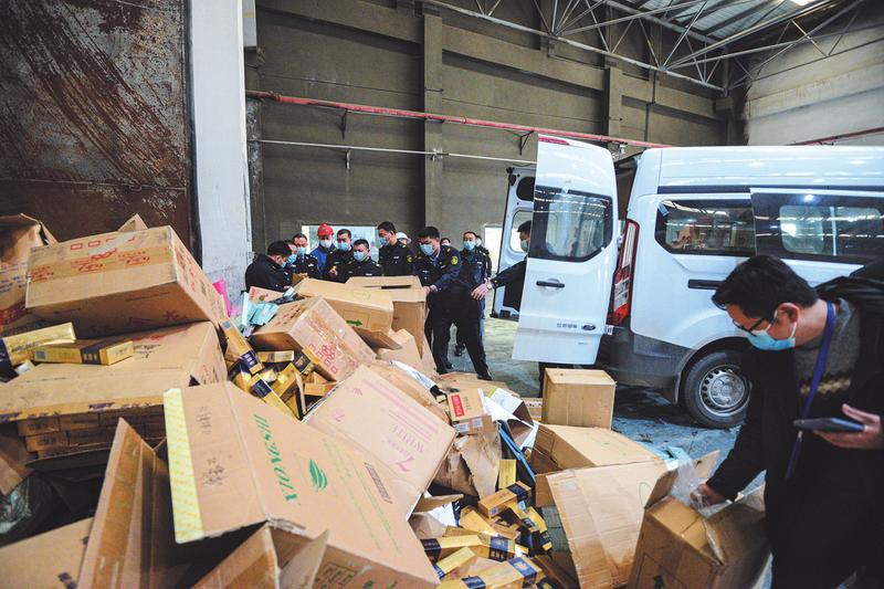 公开销毁假冒走私香烟