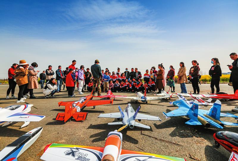为了培养青少年从小热爱航空航天科技事业的兴趣,培养锻炼青少年动手能力,让他们亲身感受科技的魅力,3月11日,随州市外国语中学航模兴趣小组利用周末时间,在随州高新区淅河镇魏岗油菜地上空开展“放飞梦想、梦圆蓝天”放飞活动。(随州日报全媒记者李文军、通讯员黄江摄)