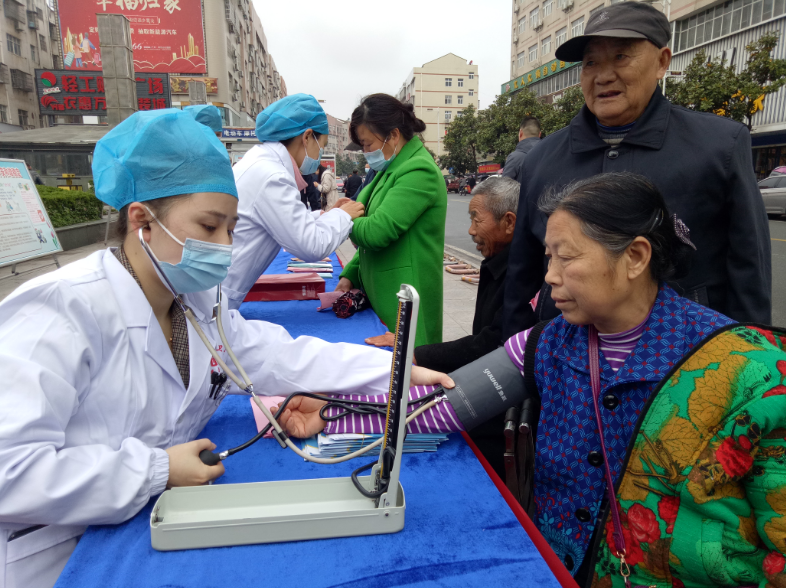 4月22日,湖北省广水市卫生健康局、印台医院在印台广场联合开展以“平安建设宣传”为主题的义诊咨询活动,向广大群众提供健康咨询义诊服务。(刘小斌摄)