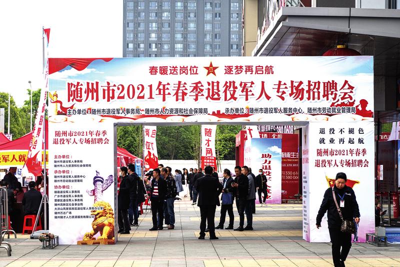 4月23日,我市在随州万达广场举办2021年春季退役军人专场招聘会。市委常委、军分区政委张爱华到招聘会现场指导工作。