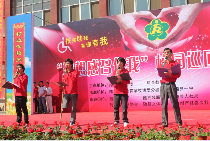 6月28日晚,县委书记陈德贵在“同在蓝天下慈善之夜”助残晚会上捐款 6月28日晚,肢体残疾人陈会荣在助残晚会上表演 2012年4月27日,省、市残联领导看望长岗镇残疾农民雕刻艺术家薛国旺 2012年9月29日,县残联、县教育局等组织了“理想感召你我”为主题的残疾人校园巡回演出 2013年4月24日,2013年度全市自强模范甘建兴带领4名肢体残疾人创办了大洪山兰草种植合作社 2013年4月24日,市自强模范洪山镇肢体残疾人甘建兴和他的残疾人团队 2013年5月8日,随州市爱普眼科医院组织医务人员对随县进行白内障患者筛查 2013年5月8日,随州市爱普眼科医院组织医务人员在厉山镇进行白内障患者筛查 2013年6月3日,随县残疾人综合服务中心外观 2013年6月28日晚,盲人兄弟邹东旭(左一)、邹雄飞在慈善之夜晚会上演出 |
