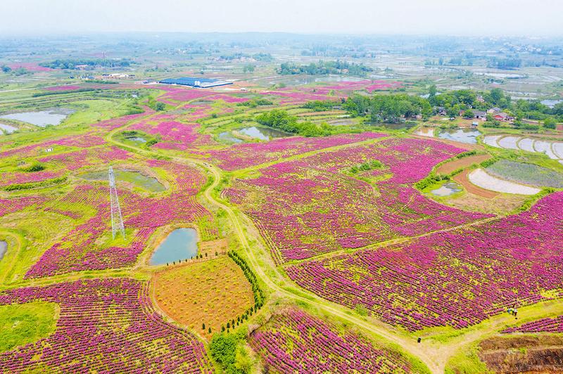 五一前后,广水市陈巷镇旭升村500亩芍药基地芍药花盛开。红艳艳的芍药花映红半边天,每天吸引数千人前来赏花。