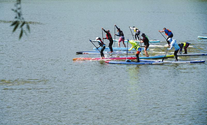 5月9日,我市的桨板爱好者在湖北省桨板教练的带领下开展桨板训练。据介绍,桨板运动近年逐渐风靡全球,深受年轻人的喜爱。