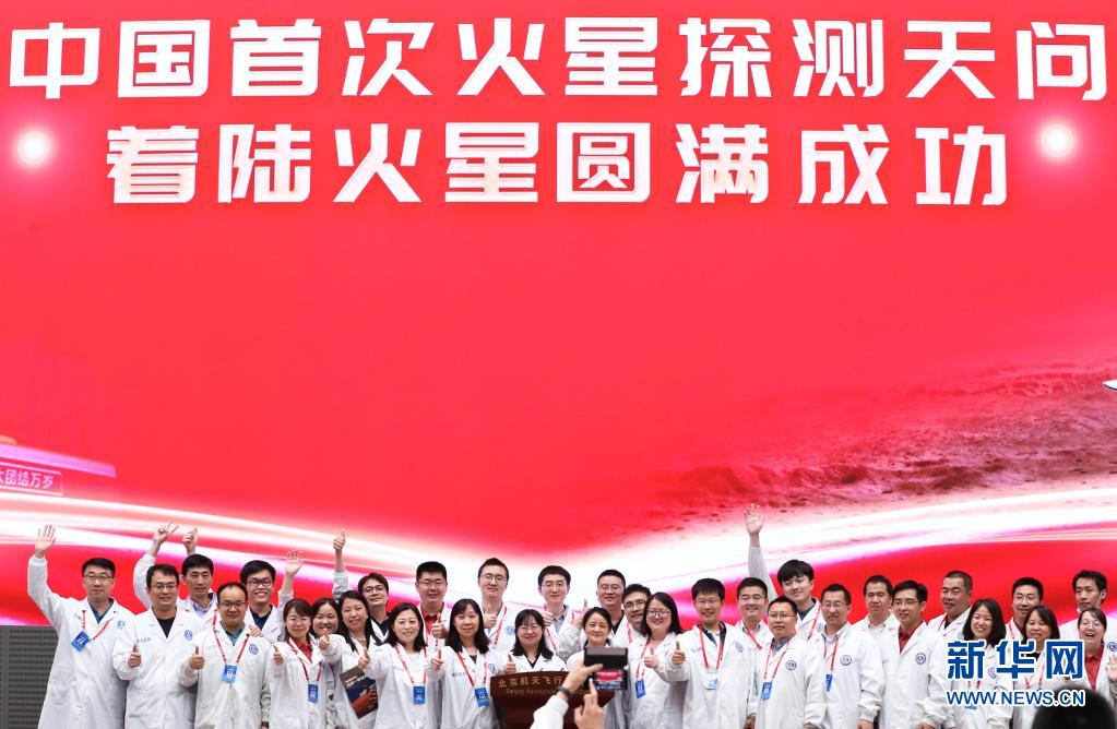 火星探测器着陆火星表面模拟图(5月15日摄)。新华社记者 金立旺 摄 二是为勇于挑战、追求卓越的精神点赞 天问一号探测器着陆火星,凝聚着我国航天人无数的汗水、泪水。 我国首次火星探测任务于2016年立项,计划通过一次任务实现火星环绕、着陆和巡视探测。没有勇于挑战、追求卓越的精气神是完成不了这样的雄心壮志的。 天问一号着陆火星后,任务总设计师张荣桥泪流满面。“祝融号”火星车传回遥测信号后,飞控中心内航天人激动高呼“火星,你好”!这些感动亿万网民的画面,背后的艰辛毋庸多言。 数十年来,我们党培养了一代代特别能吃苦、特别能战斗、特别能攻关、特别能奉献的航天人才队伍,铸就了“两弹一星”精神、载人航天精神、探月精神、新时代北斗精神等一系列航天精神。其中的一个共同点,就是“勇于挑战、追求卓越”。 习近平曾说过,人类在浩瀚的宇宙面前是渺小的,但人类的探索精神是伟大的。 广大航天工作者坚定的理想信念、高昂的爱国热情、强烈的责任担当、良好的精神风貌,不仅是我国航天领域不断向上攀登的保证,也是一切事业发展都需要的宝贵精神财富。