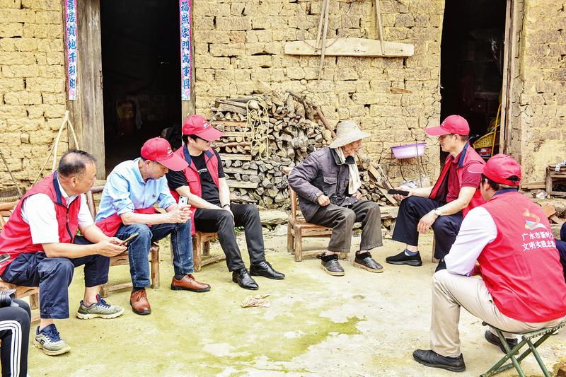 5月23日,第8个中国文艺志愿者服务日来临之际,广水市文联组织该市文艺志愿者赴余店镇,访红色遗址、听革命故事、游乡村社区,重温烽火岁月,缅怀革命先烈,寻找创作灵感。图为97岁老人程国早讲述杨常安烈士在豹子岭战斗的故事。