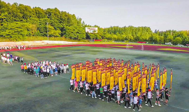5月25日,随州职业技术学院学生在导演的指导下进行寻根节方阵排练。