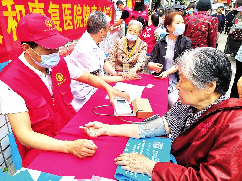 5月27日,曾都区西城办事处玉波门社区联合随州市中心血站、随州大和康复医院等,开展“学党史、感党恩,我为群众办实事”送健康免费体检活动。医护人员免费为社区居民提供测量血压血糖、诊断、健康咨询等服务,还有老中医为居民把脉,疼痛康复医生为居民进行针灸、拔罐理疗,引导大家养成健康的生活方式。