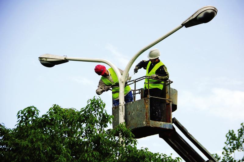 近日,随县各部门加快炎帝故里景区周边环境的整治,以良好面貌迎接辛丑年世界华人炎帝故里寻根节。图为该县路灯管理工人正进行路杆刷白作业。