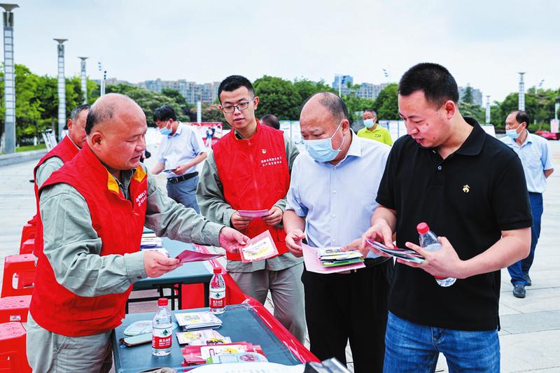6月18日,市安委办组织全市21个安委成员单位在市政务服务中心广场开展安全宣传咨询活动,副市长吴超明参加。