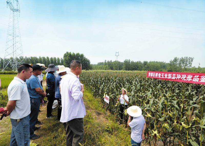 今年,曾都区农技推广中心在万店镇黄家畈村试种的“嘿甜88”“泰美甜3号”“鄂科黄白”超甜玉米获得成功。甜玉米营养丰富、口感甘甜、薄脆而渣少,素有“水果之王”“蔬菜之王”的美称。图为6月25日,曾都区农技推广中心组织各镇(办)农技服务人员、甜玉米销售和种植代表观摩品鉴,并邀请湖北省农业科学院粮食作物研究所玉米专家黄益勤研究员为参会人员讲解各甜玉米品种的特点、栽培技术,交流生产中遇到的技术难题。(随州日报全媒记者徐斌、通讯员严双义摄)