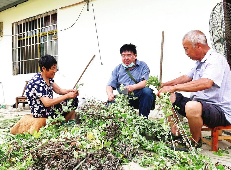 工行随州分行驻曾都区万店镇粉铺村工作队组织脱贫户开展捉蜈蚣、捡野生菌、割野生艾蒿、采中草药等,户均增收5000元以上。图为近日工作队员与脱贫户一起采收野生艾蒿。