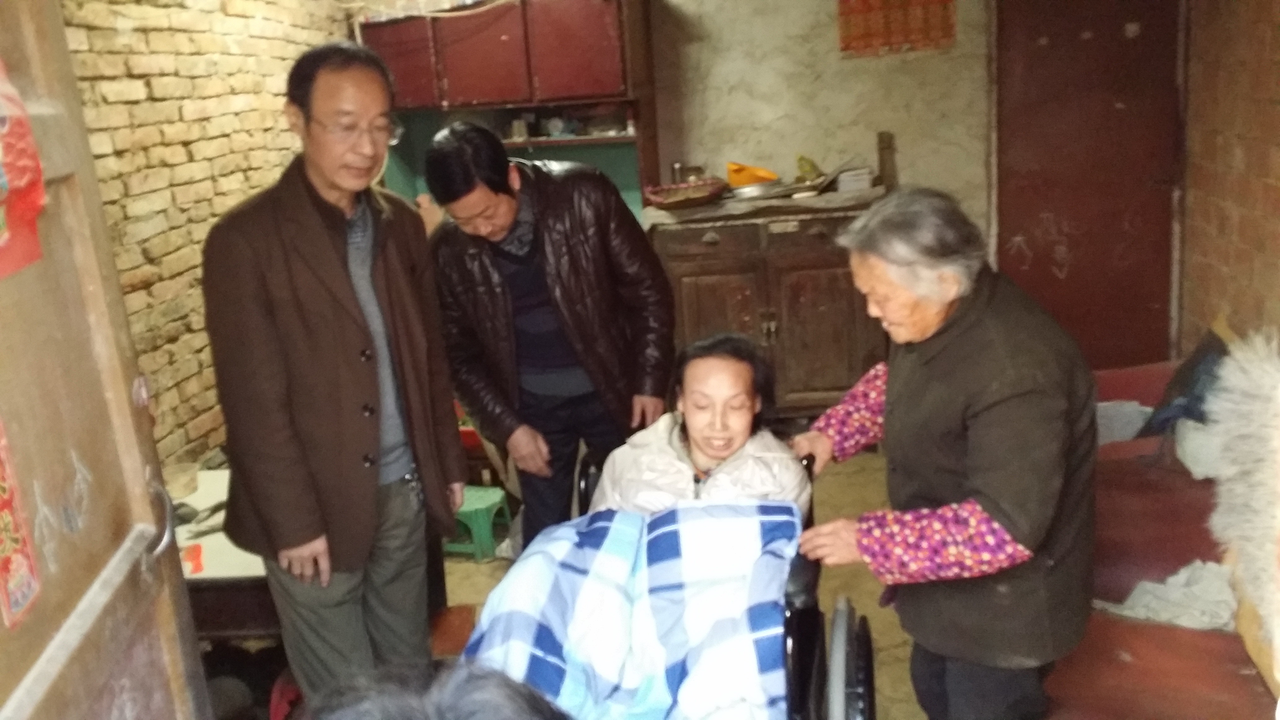当从楚天快报看到“78岁老母照顾瘫痪女儿34年”的感人事迹,得知鲁远青特别想要一把轮椅的心声后,12月2日,市城投公司党组书记刘明申、市残联副理事长严肃一行到曾都区万店镇石桥村14组慰问陈光英母女。详细询问了母女生活状况和身体情况,叮嘱母女一定要注意身体,勉励鲁远青要很好地活着,便是对母亲最好的回报;要求当地村委干部要为母女创造良好的舒适环境,最大可能落实好相关政策。同时,送去了轮椅、棉被及慰问金。 陈光英母女所居住的石桥村14组位置偏远、交通不便。13岁那年,被确诊患上类风湿关节炎的鲁远青彻底瘫痪在床。母亲陈光英一直照顾着女儿吃饭、洗漱、穿衣、大小便等生活起居,34年如一日,母女相依为命,目前生活开支全靠农村最低生活保障、五保金等。母爱的深厚、女儿的坚强受到社会的关注和称赞。 |