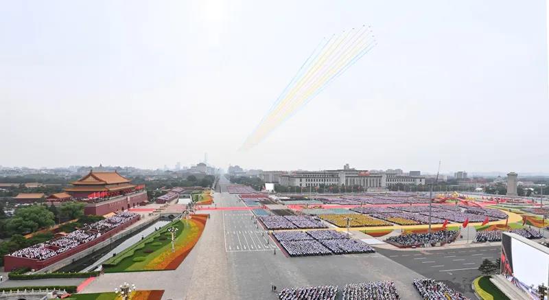 ▲2021年7月1日,庆祝中国共产党成立100周年大会在北京天安门广场隆重举行。 7月1日,在天安门城楼上,习近平总书记庄严宣告—— 经过全党全国各族人民持续奋斗,我们实现了第一个百年奋斗目标,在中华大地上全面建成了小康社会,历史性地解决了绝对贫困问题,正在意气风发向着全面建成社会主义现代化强国的第二个百年奋斗目标迈进。 始终把民族复兴重任扛在肩上、把人民放在心中最高位置,中国共产党以义无反顾的牺牲、不屈不挠的奋斗、改天换地的豪情,换来了国家的欣欣向荣、民族的扬眉吐气、人民的幸福安康。